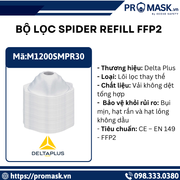 Bộ lọc SPIDER REFILL FFP2 chính hãng Delta Plus – lõi lọc thay thế đạt chuẩn CE EN 149  FFP2, lọc bụi mịn hiệu quả, an toàn, tiết kiệm, phù hợp khẩu trang SPIDERMASK.