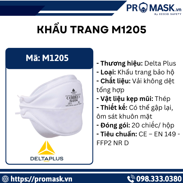 Khẩu trang phòng độc M1205 đạt chuẩn FFP2, lọc hiệu quả bụi mịn và hạt không dầu, thiết kế gọn nhẹ, ôm khít, phù hợp môi trường làm việc nhiều bụi.