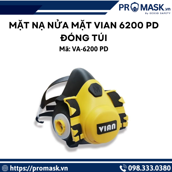 Mặt nạ nửa mặt VIAN 6200 PD đóng túi là dòng mặt nạ bảo hộ được thiết kế chuyên dụng nhằm bảo vệ hệ hô hấp trong môi trường có bụi mịn, khói độc hoặc hơi hóa chất. Sản phẩm được sản xuất theo tiêu chuẩn an toàn cao, đáp ứng nhu cầu sử dụng của công nhân, kỹ sư, thợ sơn, thợ hàn, và nhân viên trong nhà máy công nghiệp.