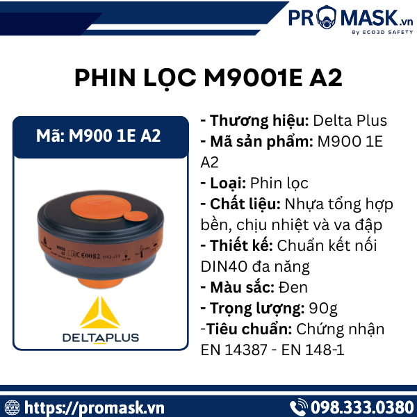 Trong môi trường làm việc thường xuyên tiếp xúc hơi hữu cơ, dung môi, sơn, keo và các hợp chất bay hơi, việc trang bị phin lọc đạt chuẩn là yêu cầu bắt buộc để đảm bảo an toàn cho hệ hô hấp. Phin lọc M900 1E A2 Delta Plus được thiết kế chuyên dụng cho các ngành nghề sử dụng hóa chất, mang đến khả năng lọc mạnh mẽ, ổn định và độ bền vượt trội.Với chất liệu cứng cáp và khả năng lọc hơi hữu cơ nhóm A2 công suất cao,phin lọc M9001 1E A2 là lựa chọn lý tưởng cho thợ sơn, kỹ thuật viên sửa chữa, công nhân nhà máy hóa chất và các môi trường công nghiệp nặng.