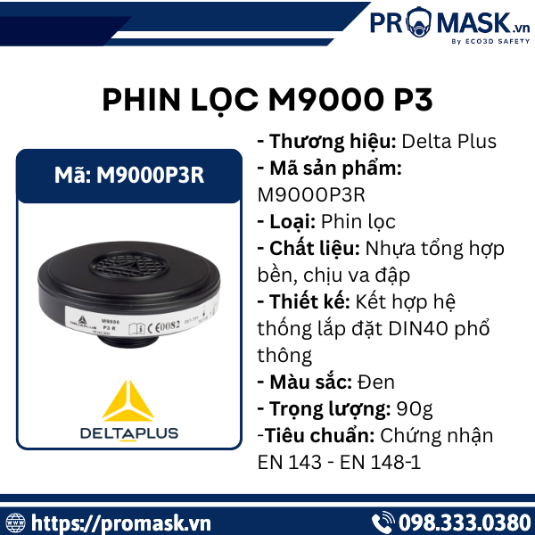 Trong môi trường làm việc ô nhiễm, chứa nhiều bụi mịn, khí độc và các tác nhân gây hại trong không khí luôn là mối nguy cơ trực tiếp với sức khỏe hệ hô hấp. Phin lọc M9000 P3 Delta Plus được thiết kế chuyên dụng để bảo vệ an toàn hô hấp cho người lao động. Phù hợp với nhiều ngành nghề từ nông nghiệp, xây dựng, khai thác mỏ đến bảo trì và công việc tạm thời. Với chất liệu bền bỉ, kết nối chuẩn DIN 40 và khả năng tái sử dụng, sản phẩm là giải pháp an toàn, hiệu quả và tiện lợi cho mọi môi trường độc hại.