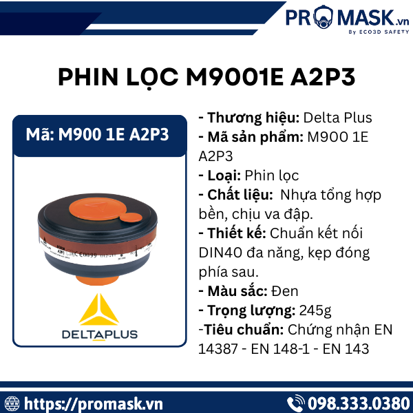 Trong các môi trường làm việc có nồng độ hơi hữu cơ, khí độc và bụi mịn cao, việc sử dụng phin lọc đạt chuẩn châu Âu là yếu tố bắt buộc để bảo vệ hệ hô hấp. Phin lọc M9001E A2P3 của Delta Plus là giải pháp kết hợp lọc hơi hữu cơ cấp A2 và lọc bụi mịn chuẩn P3, mang đến khả năng bảo vệ toàn diện cho người lao động trong nhiều lĩnh vực từ sơn sửa, hóa chất, công nghiệp nặng đến bảo trì kỹ thuật. Phin lọc được thiết kế theo chuẩn kết nối DIN40 phổ biến và sử dụng than hoạt tính chất lượng cao, M9001E A2P3 là lựa chọn lý tưởng cho những môi trường ô nhiễm phức tạp, yêu cầu hiệu suất lọc cao và độ an toàn vượt trội.