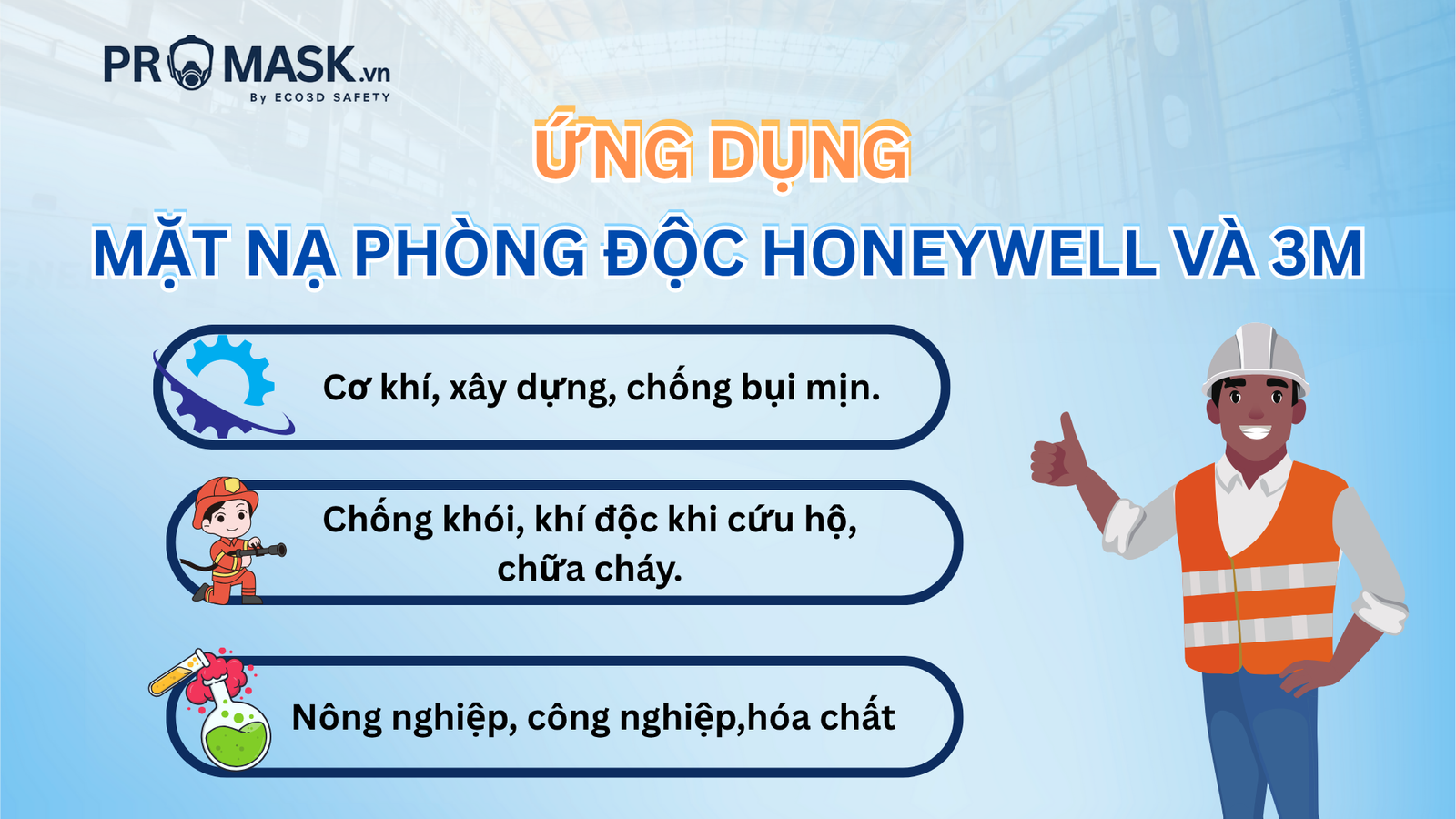 - Chọn mặt nạ Honeywell nếu cần khả năng bảo vệ cao trong môi trường đặc biệt như PCCC, điện hạt nhân hoặc hóa chất độc hại.