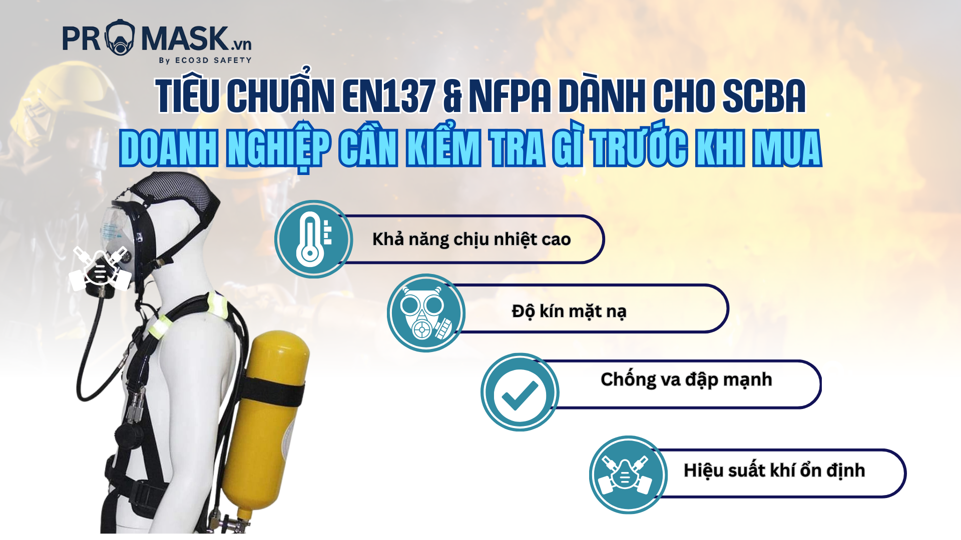 Việc lựa chọn SCBA phù hợp theo tiêu chuẩn EN137 hoặc NFPA không chỉ giúp doanh nghiệp tuân thủ pháp luật mà còn bảo vệ an toàn cho lực lượng vận hành trong môi trường khí độc – cháy nổ. Doanh nghiệp nên kiểm tra chứng chỉ, tính năng, thương hiệu và khả năng kiểm định trước khi đưa vào sử dụng.